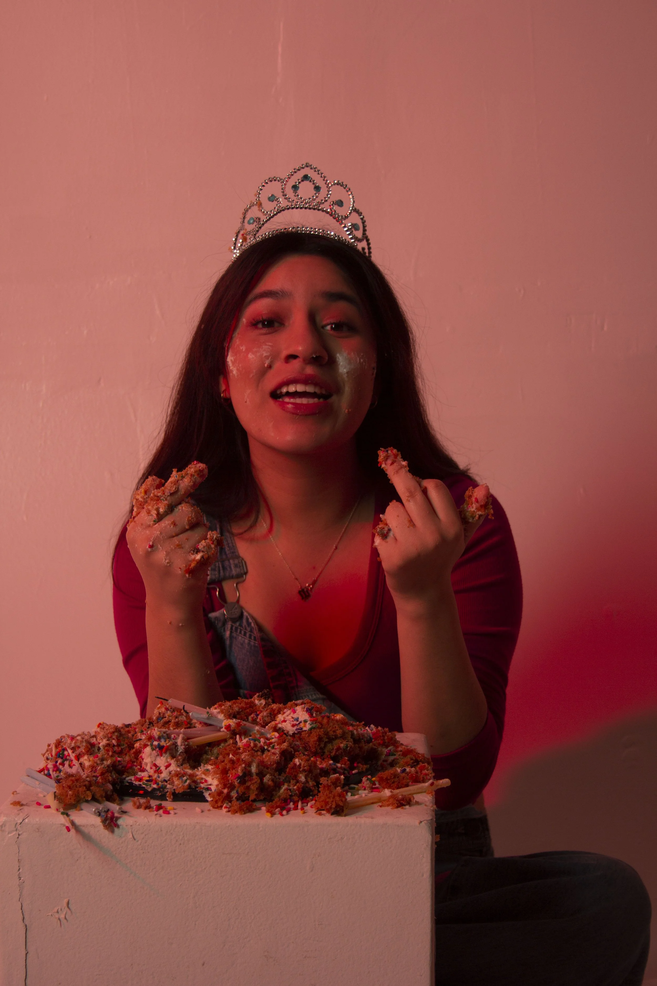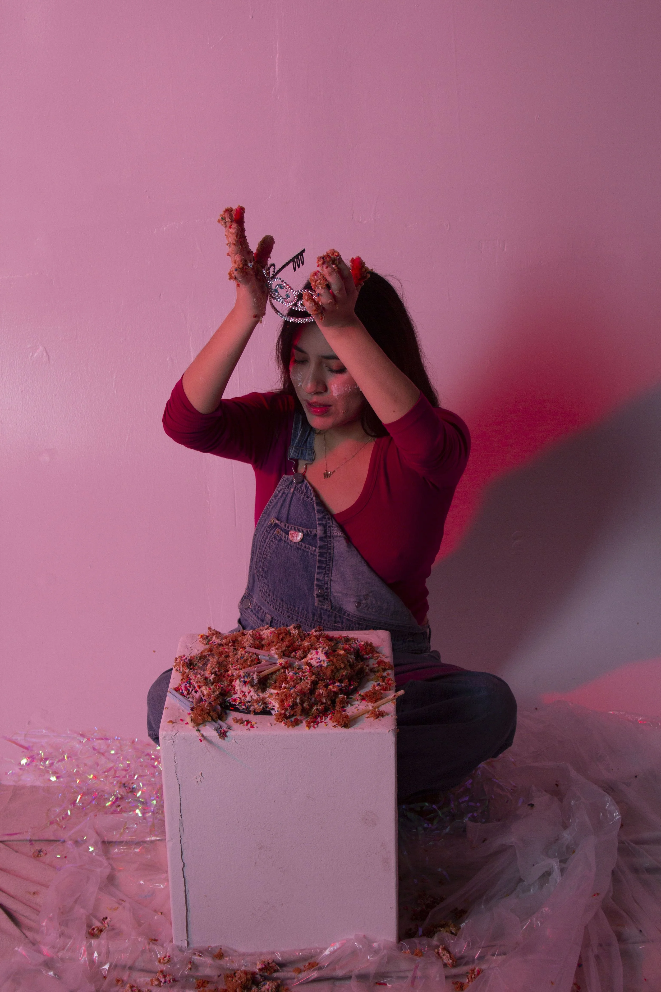 “Let them Eat Cake” is a 2023 photoshoot for a final project in Photography I. Photos were taken in the on-campus photo studio, using RGB LED lights.