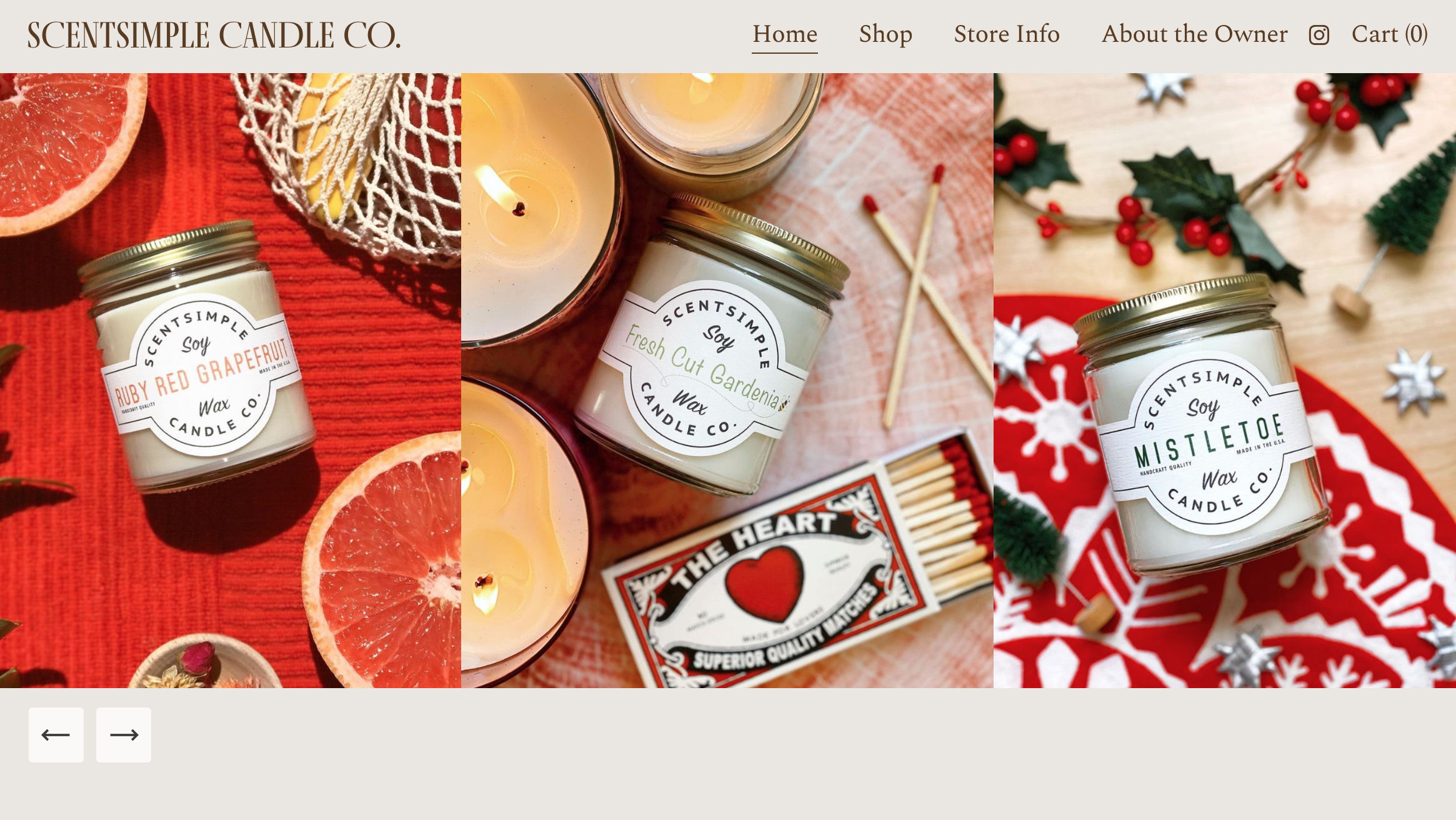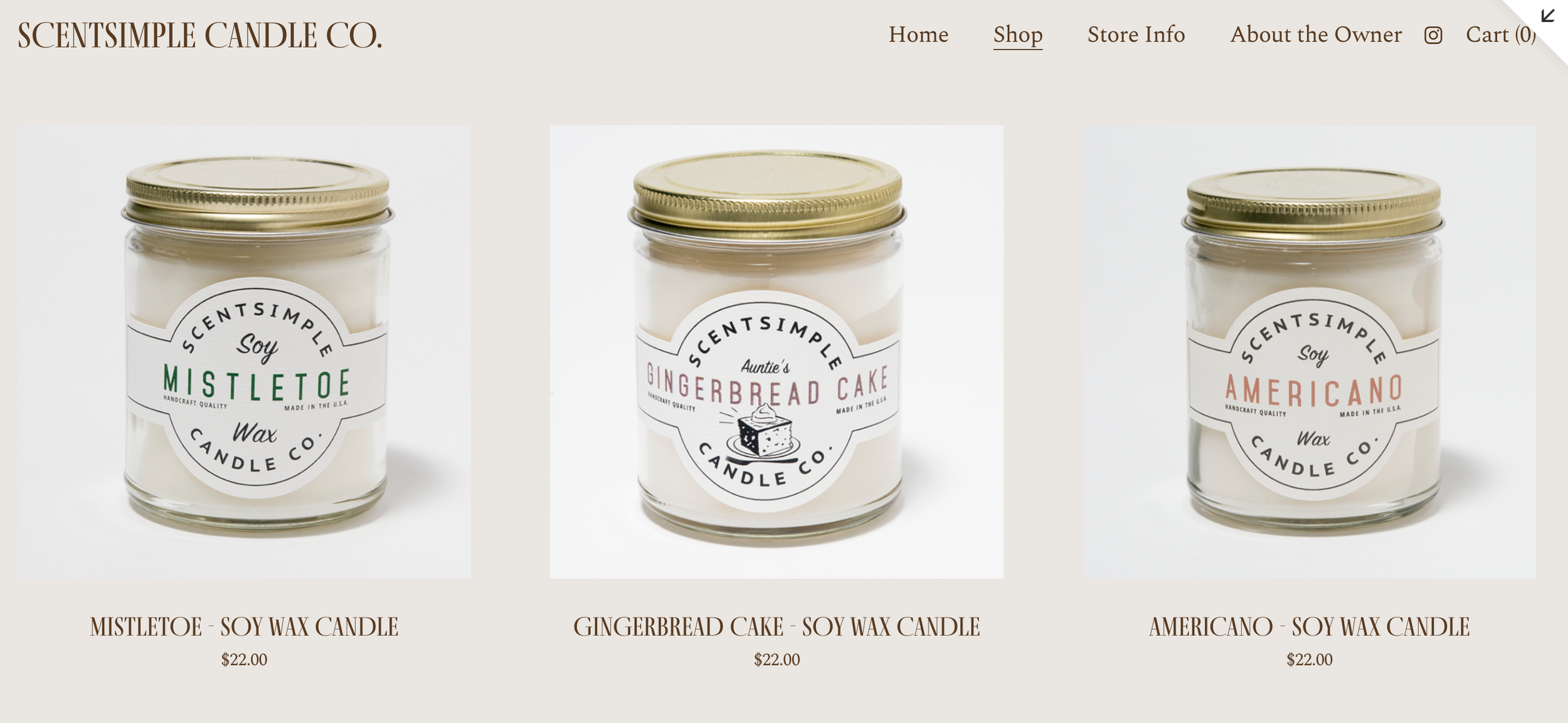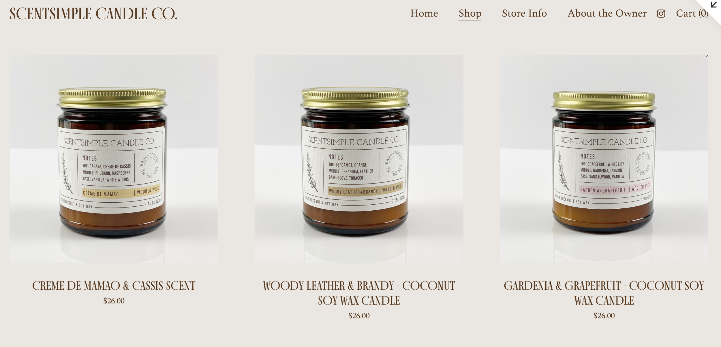 Unfortunately, Scent Simple Candle Co. is no longer in business. Therefore, the website is no longer active. Below are previous images of the website.